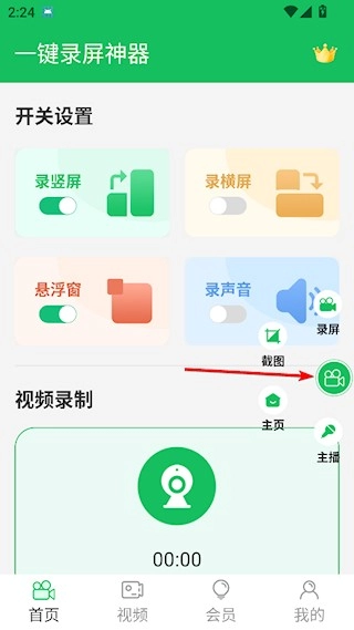 1、打开一键录屏神器,点击悬浮窗进行开启