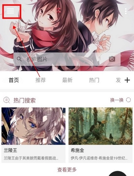 1.第一步安装并打开搜图神器后点击左上角【三】。