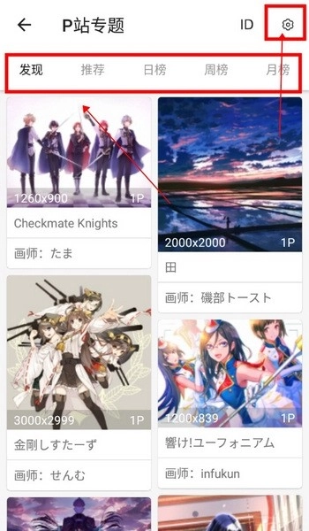3.【P站专题】页面中提供了多个榜单可供浏览,
