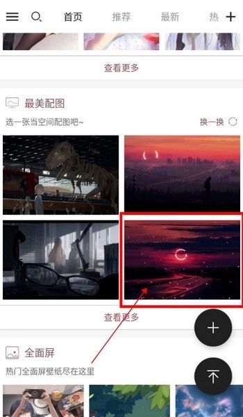 1、打开后默认进入【首页】,挑选你喜欢的手机动态壁纸并点击对应的图片。
