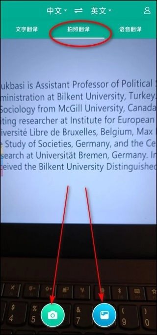 2、可以用手机摄像头对准需要翻译的内容,或者直接调用手机内存里的图片来完成语言翻译。