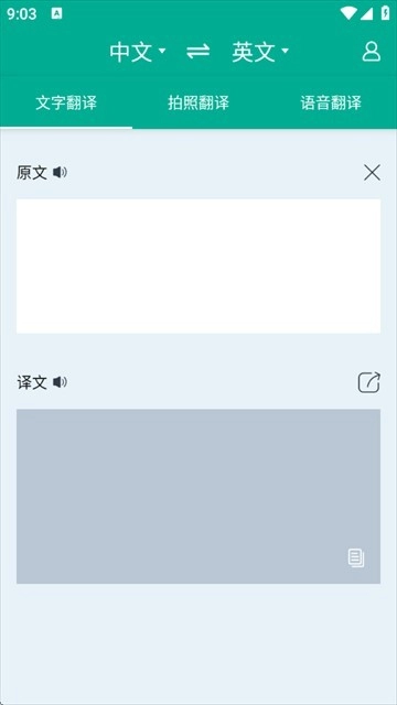 1、文字翻译功能:只需输入需要翻译的文本就能完成翻译操作,在页面上方选择好目标语言以及翻译语音的类型即可。