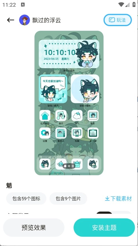 5、点击喜欢的主题后,既能预览其效果,也能直接进行安装操作。