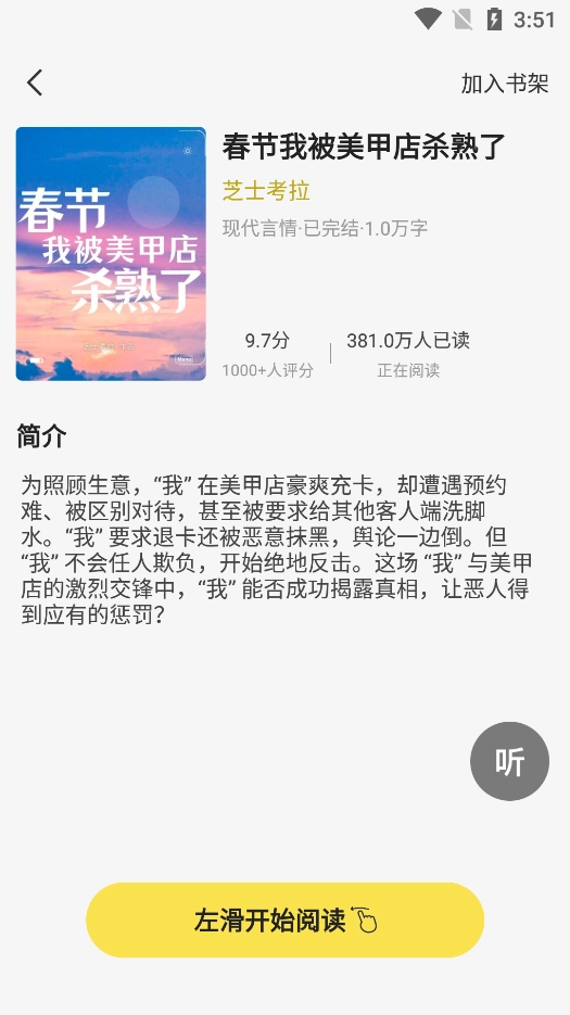 3、选择感兴趣的小说了解详情