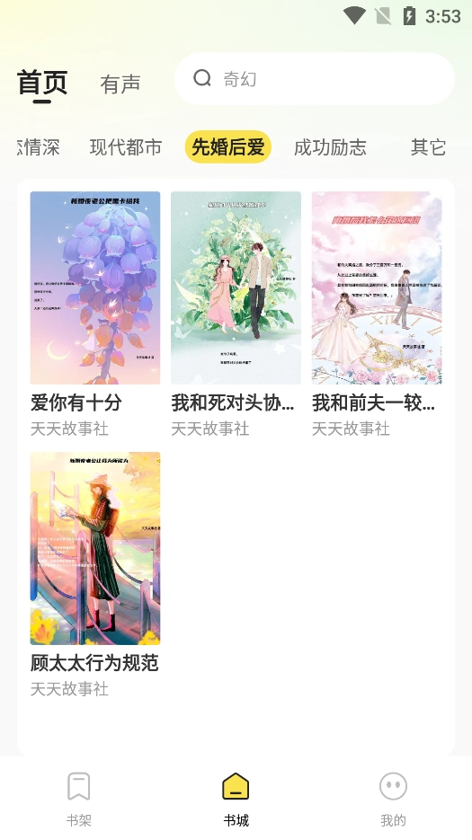 1、打开软件在书城页面点击顶部的有声