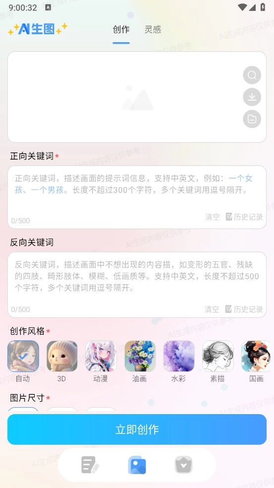 5、切换到“ai生图”板块,还能输入关键字来生成图片。