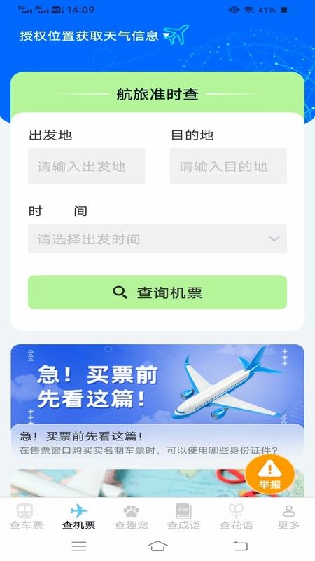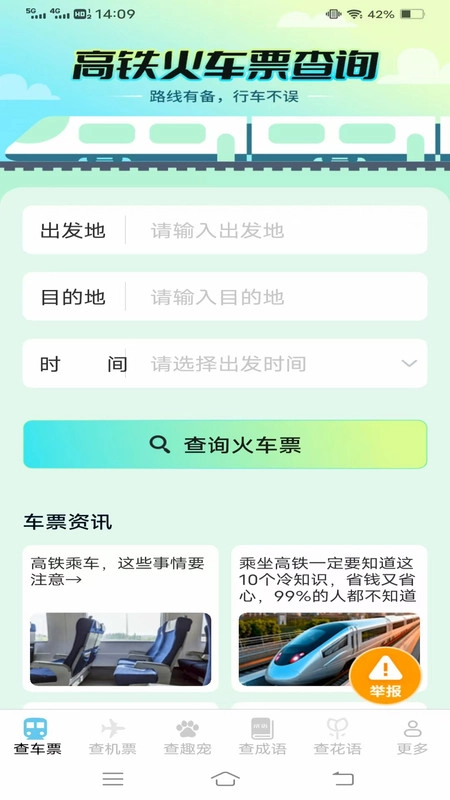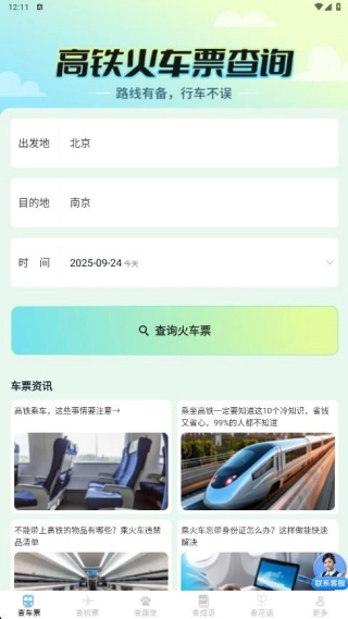 趣查火车飞机余票是一款能让你秒速进入、轻松掌握每日车次信息的出行服务软件。在这里,你可以自定义出发和到达城市,只需一键搜索,就能清楚了解每一趟车次的对应票价,还能实时查看余票的变化情况,助力大家不错过任何抢票的好时机。此外,平台还提供天气等其他实用信息的查询服务。