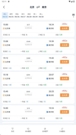 3、支持灵活筛选班次,可按时间、价格自由选择,精准匹配您的出行需求,让旅途更贴合心意。