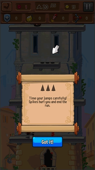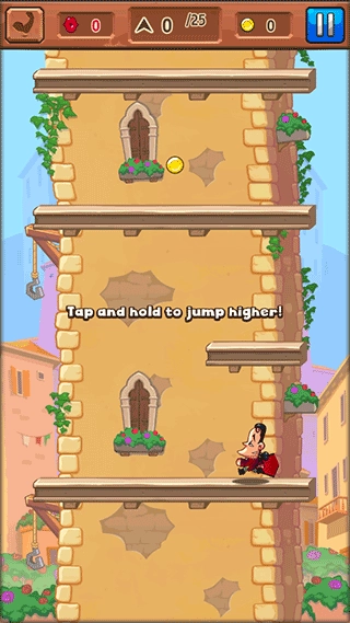 1、安装好风流骑士手机版并进入游戏后,你只需长按屏幕就能操控人物完成跳跃动作。