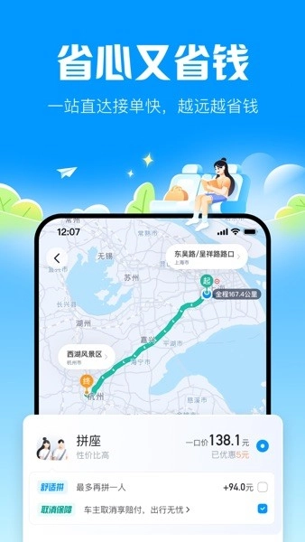 拼座功能可以让您在出行时享受更优惠的价格;乘客与车主之间的iM即时通信功能,能确保双方沟通更顺畅;而乘客与车主投诉功能,则助力我们共同营造文明的出行环境。