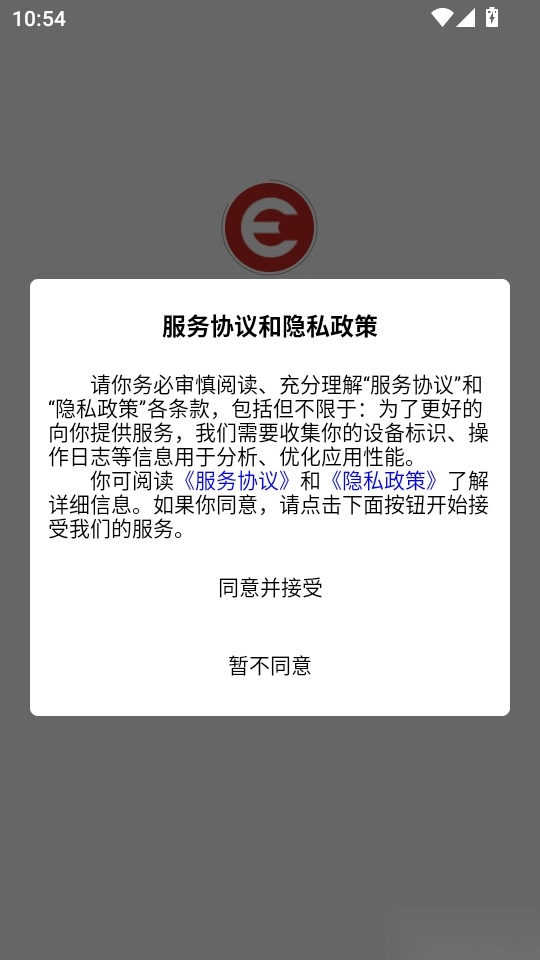 1.首先打开软件阅读协议和隐私政策后,点击“同意并接受”按钮进入