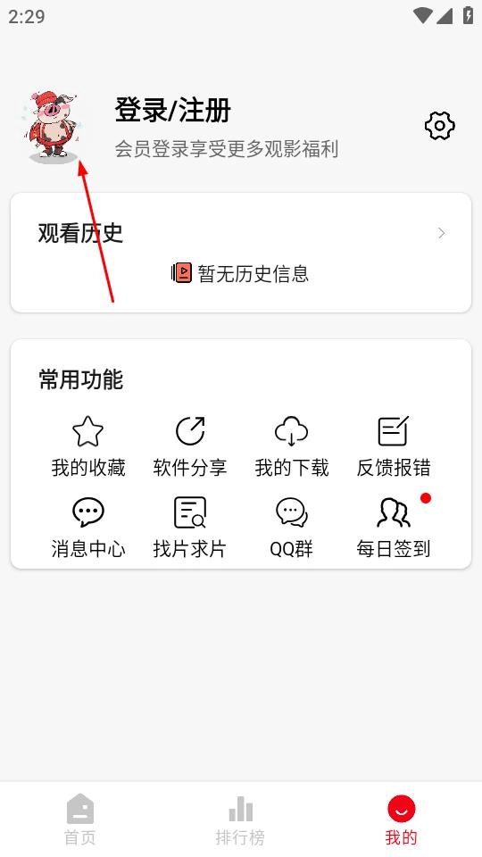 1、打开花小猪影视,点击页面右下角的我的,进入个人页面。