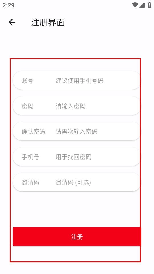 4、在注册界面依次输入信息,最后点击注册按钮,完成注册。