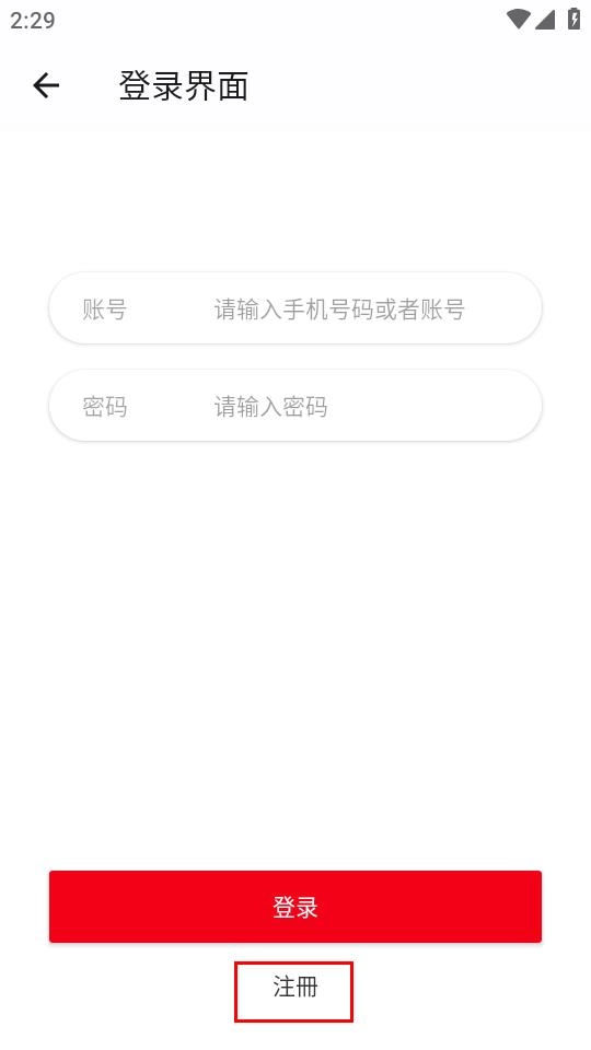3、在登录界面,点击注册选项,进入注册界面。