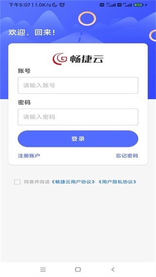 4、输入账号和密码,勾选协议后点击登录按钮,完成账号登录。