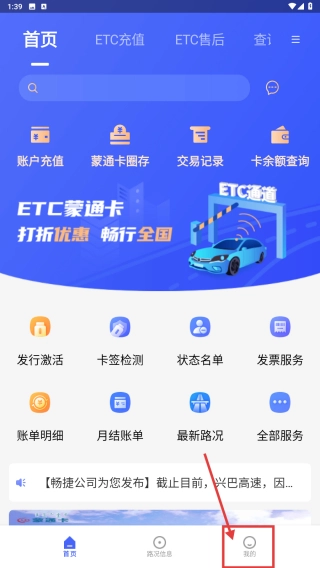 1、打开ETC服务类应用,点击底部我的选项,进入个人中心页面。