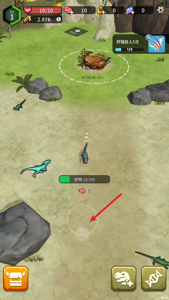 在游戏里拖动屏幕会弹出虚拟摇杆,借助它就能操控恐龙移动。