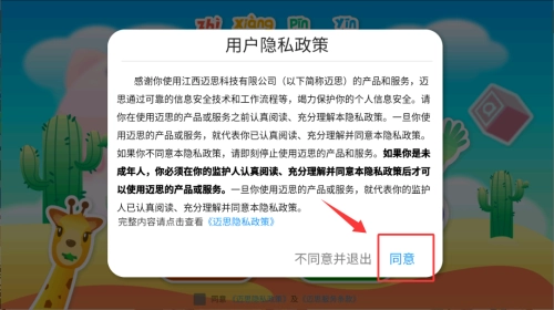 1、首次启动应用,请在用户隐私政策弹窗点击同意。
