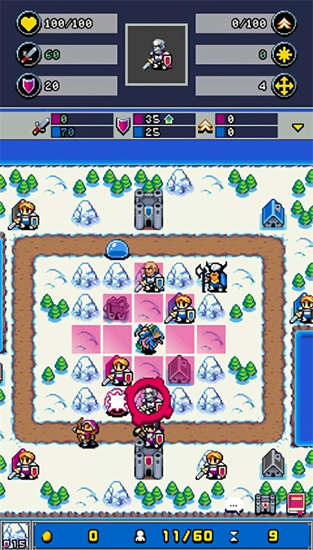 4、不同地图有着不同的地形,每一种地形都对角色有影响,使战斗更加有趣。