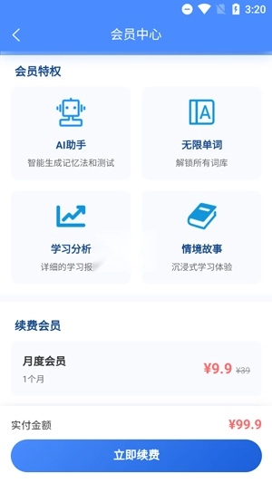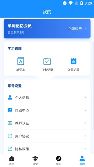 打开你的智词侠App,在个人中心点击续费会员功能。