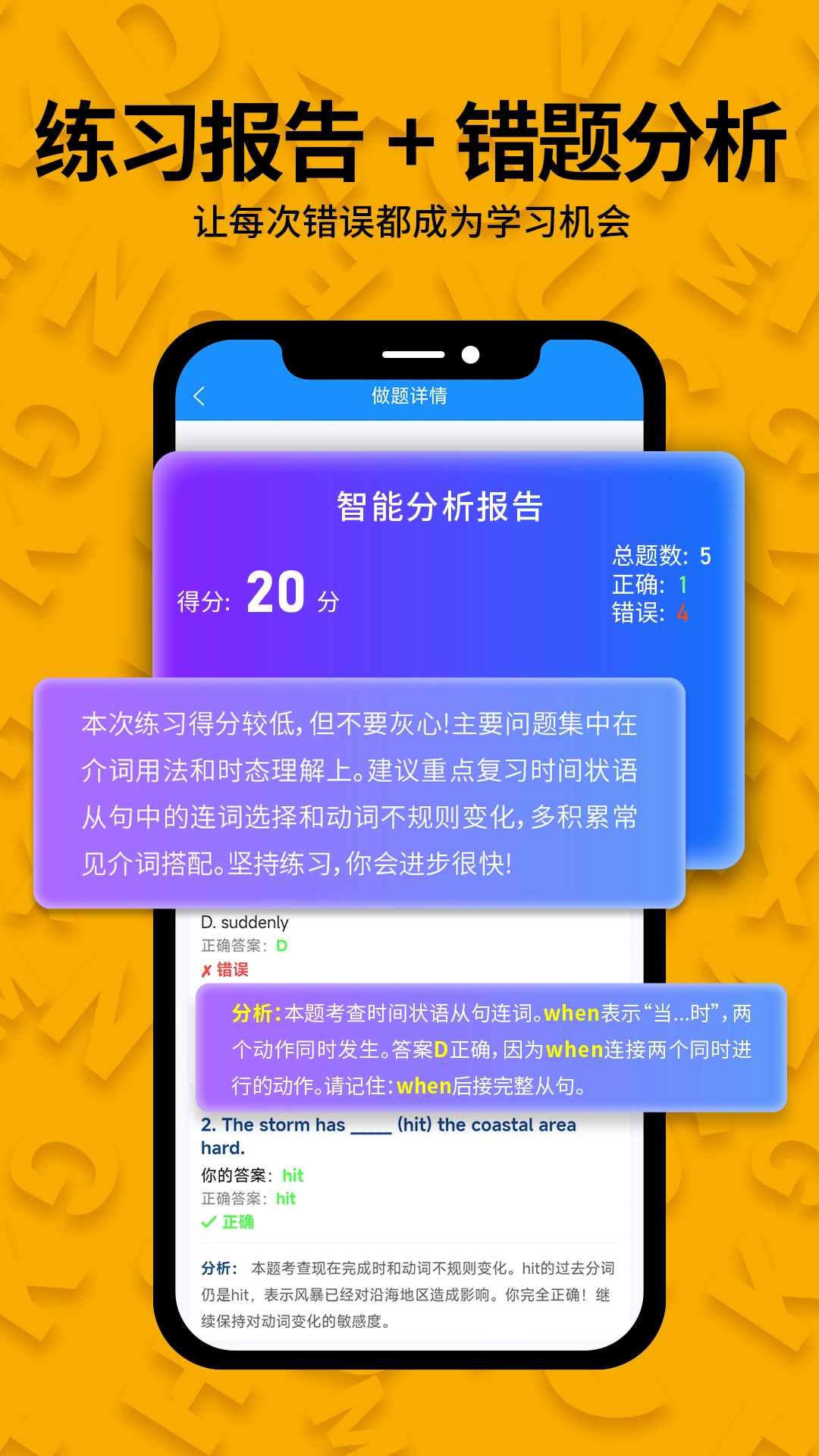 智能测试评估:提供选择题、填空题等多种题型,全面检验用户的学习效果和单词掌握程度。