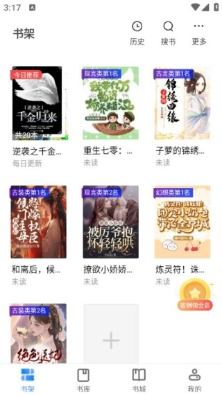 3、书架不仅可以集中收纳用户喜爱的小说,还能提供个性化的阅读推荐,从而让用户的阅读体验更具针对性与连贯性。