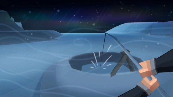 只需找到适合的地方便可开始打钻,以便看到冰块下方的河水。