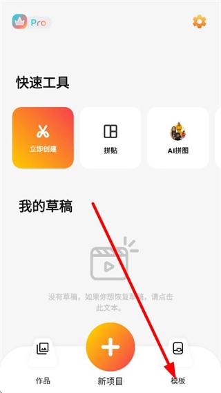 1、在软件首页,点击底部的模板,进入模板选择页面。