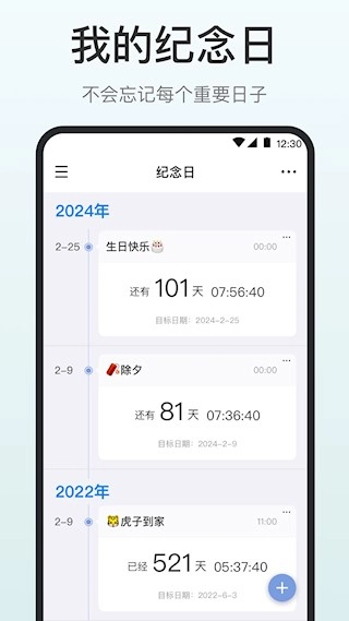 4、纪念日倒计时:可设置重要日子与倒计时,通过提醒功能守护关键时刻,避免遗漏具有意义的节点。