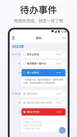 3、待办管理:支持创建待办事项并设置优先级,完成状态清晰呈现,结合提醒功能,帮助用户有序推进各项事务。