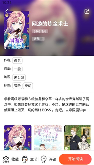 2、点击自己喜欢的一部漫画进入详情页