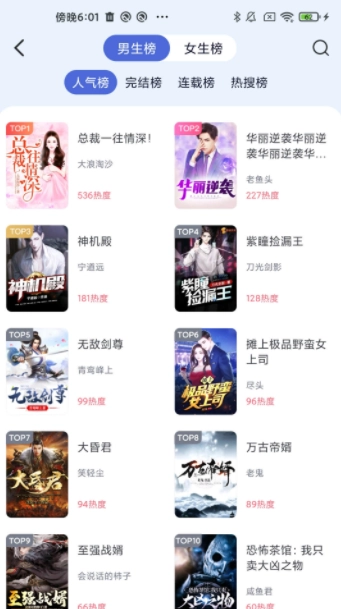 2、通过榜单能够查看所有热门小说