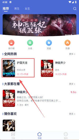 1、打开软件在书城可以看到各种小说
