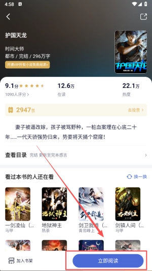 2、轻点“立即阅读”按钮后,系统会为您打开所选小说,助您畅快沉浸于阅读之中。