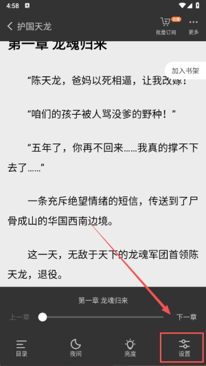 3、点击“设置”选项,进入对应的界面,从而能够调整和个人阅读体验相关的各项参数。