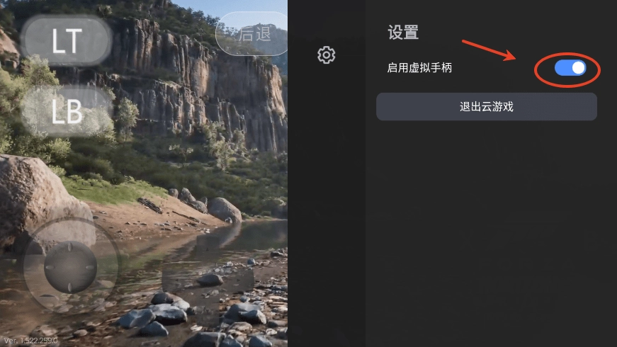 9、按下返回键,调出设置界面后,点击“启用虚拟手柄”选项;