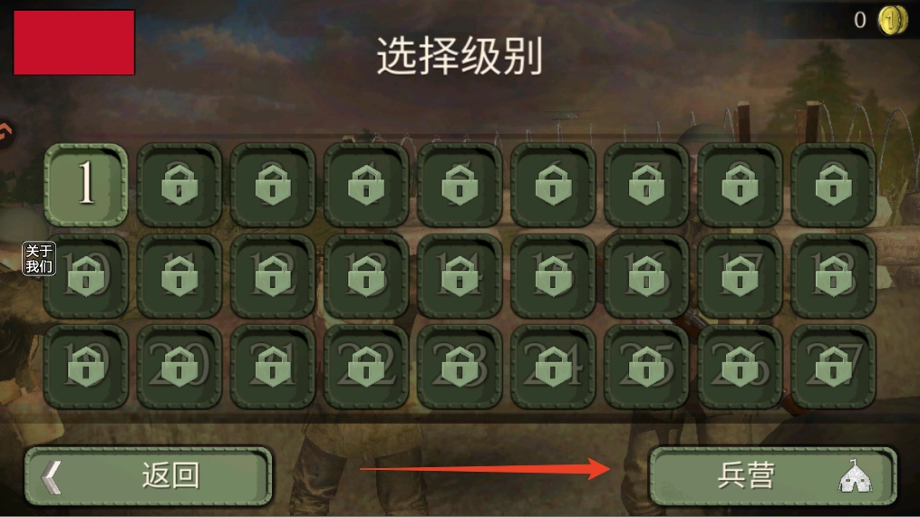 5、可选择关卡,需通关关卡 1 才能解锁后续关卡,进入前可点击兵营进行兵种管理。