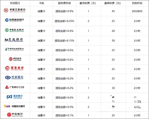 1、费率区间:可对接农业银行、工商银行、建设银行等12家主流银行,手续费依据提现金额按0.1%-0.9%的比例收取。