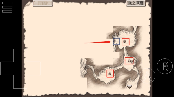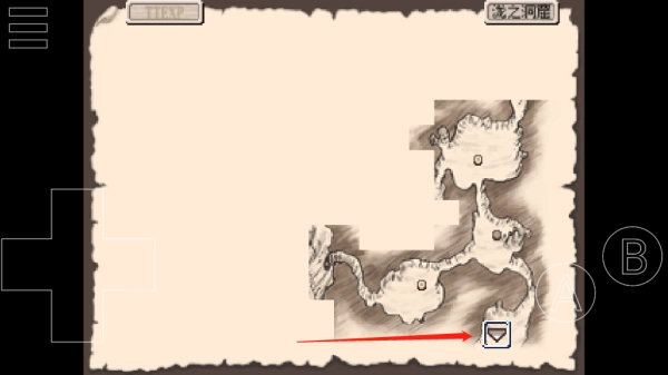 7、移动方框至“倒三角”,退出冒险回到城镇。