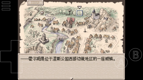 游戏中的地图绘制也是别具风格,虽然只是简单的的把地点标注出来,但是却能让人一眼记住。而酒馆,药店等等背景的绘制也是和游戏的风格十分契合。