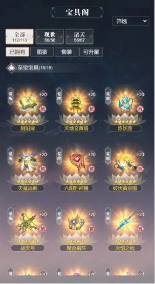 每个被动宝具拥有一种基础属性和一种被动效果,升级宝具会提升宝具的基础属性,宝具升星则会提升宝具的被动效果。