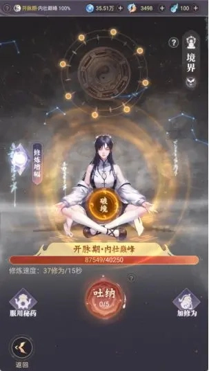 作为一款修仙游戏,境界培养是重中之重。在《大武道》中,玩家主要通过挂机修炼和炼制丹药获取经验,通过升级灵气池、培养功法和宝具等提升挂机修炼速度。