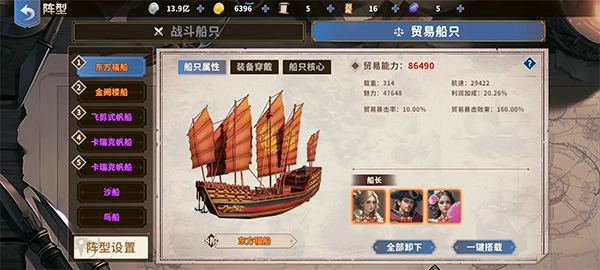 3、在橙货之前,建议跑双边贸易。当两边都解锁第一个橙货后,船和贸易船长的实力也提升不少,这时可以选择马卡尔线或日耳曼线单边推进。