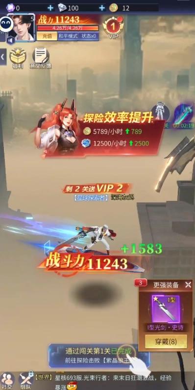 2、登录完成进入主页面,角色会自动开启战斗模式,无需手动操作即可展开基础对战。