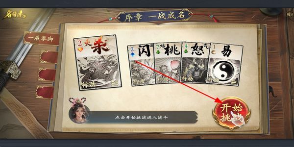 2、进入关卡界面后,查看已发放的手牌组合,点击开始挑战按钮,即可进入战斗对局开启对战。