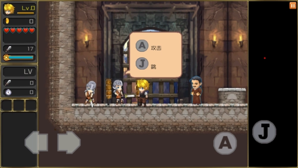 2、正式体验前先熟悉基础操作:左右键控制人物移动,A 键负责攻击,J 键用于跳跃。