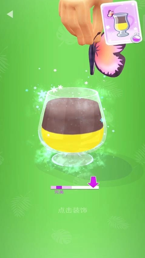 解锁各种精美装饰,包括了蝴蝶、柠檬、薄荷等等,放在杯子上。