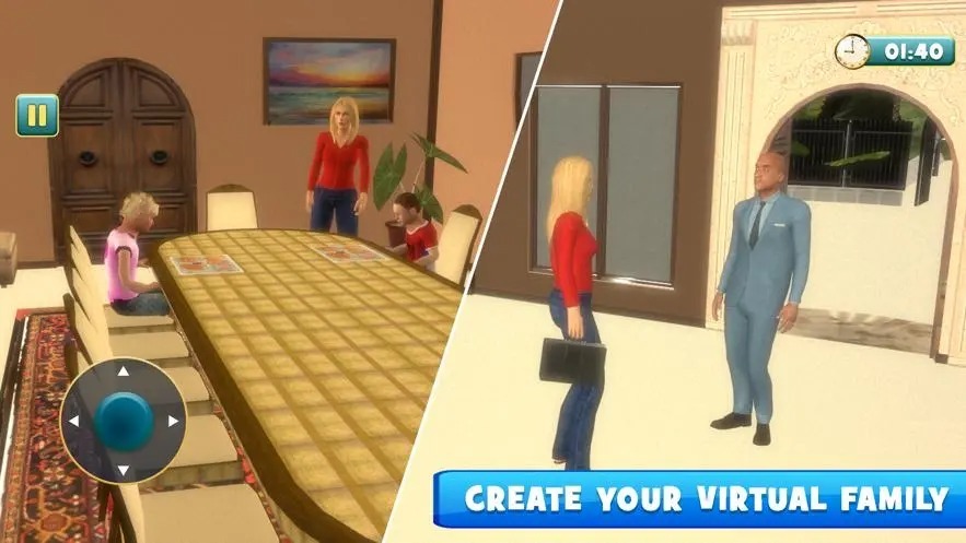 虚拟家庭3(Virtual Families 3)作为一款家庭模拟经营类游戏,既传承了该系列的核心玩法,又融入了不少全新的内容设定。游戏中的角色形象更为萌趣,玩家能够体验模拟婚恋、孕育子女、构建家庭等重要人生历程。其画面采用带有渲染效果的2D图像与卡通画风,极具亲和力。手机版本里温馨的场景设计搭配精致的家具布置,一家人温馨共处的画面传递出满满的暖意。