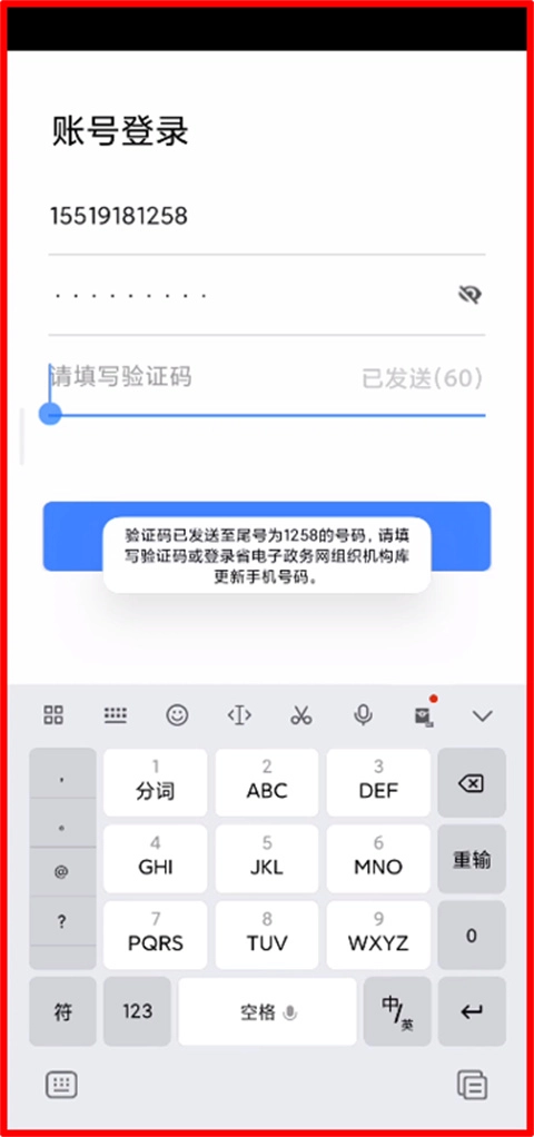 1、安装完成后首次启动应用,输入手机号及验证码完成账号登录。