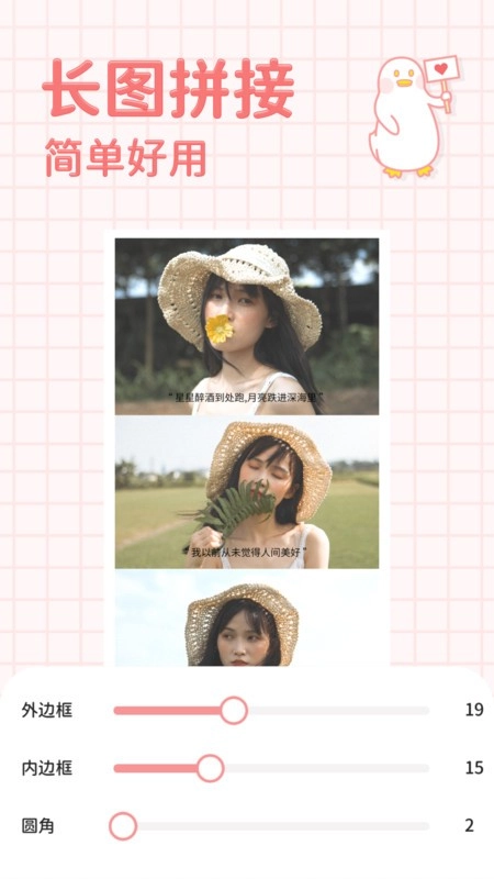 拼图鸭相机是一款手机软件,为用户提供海量精美相机滤镜,能帮助用户对多张照片图片进行拼图拼接处理,软件内汇集了大量拼图模板,也有各类美化滤镜可供使用,用户可自定义选择图片完成长图拼接,此外,还有不同拼接尺寸的模板可选,还能处理细节,使用方法简单,感兴趣的话就快来体验吧!!